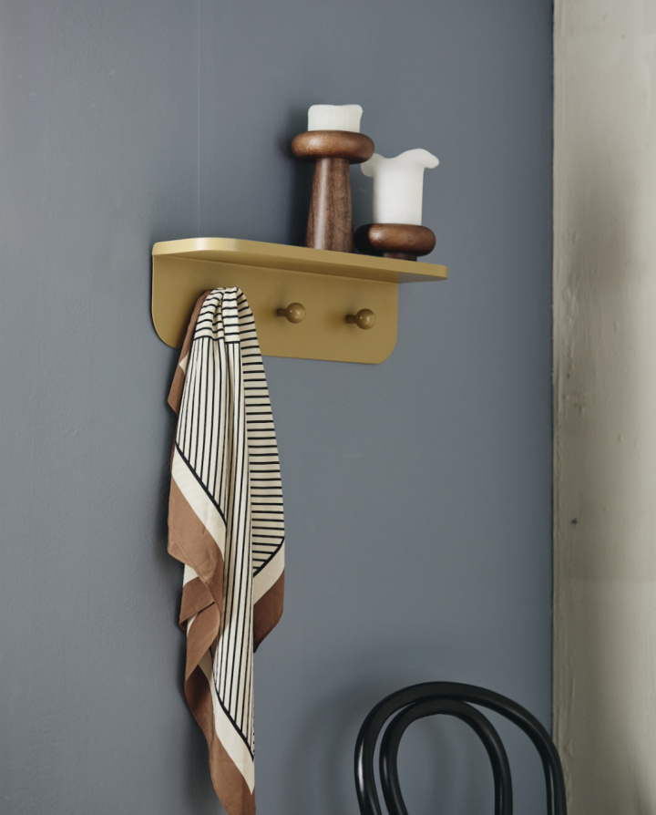| Material: | Vägghylla med tre krokar tillverkad i aluminium och stål. |