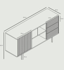 | Material: | TIllverkad av askfanerad MDF. Mattsvarta pulverlackerade metallben. 3 lådor och 2 skjutdörrar som stänger två fack med vardera flyttbara hyllor. |