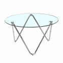 | Material: | Tillverkad av härdat glas samt silvriga metallben i krom. |