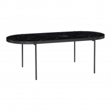 Ovalt soffbord i svart metall från det danska varumärket Hübsch. Ditt vardagsrum blir en elegant retrodröm med detta bord. Matcha gärna med ljusstakar i trendmetallerna koppar eller mässing. Vi tror också att du har allt att vinna på att ställa in stengods och detaljer i trendig terrazzo. Art deco är helt rätt just nu och den här pjäsen är geometriskt fulländad!
